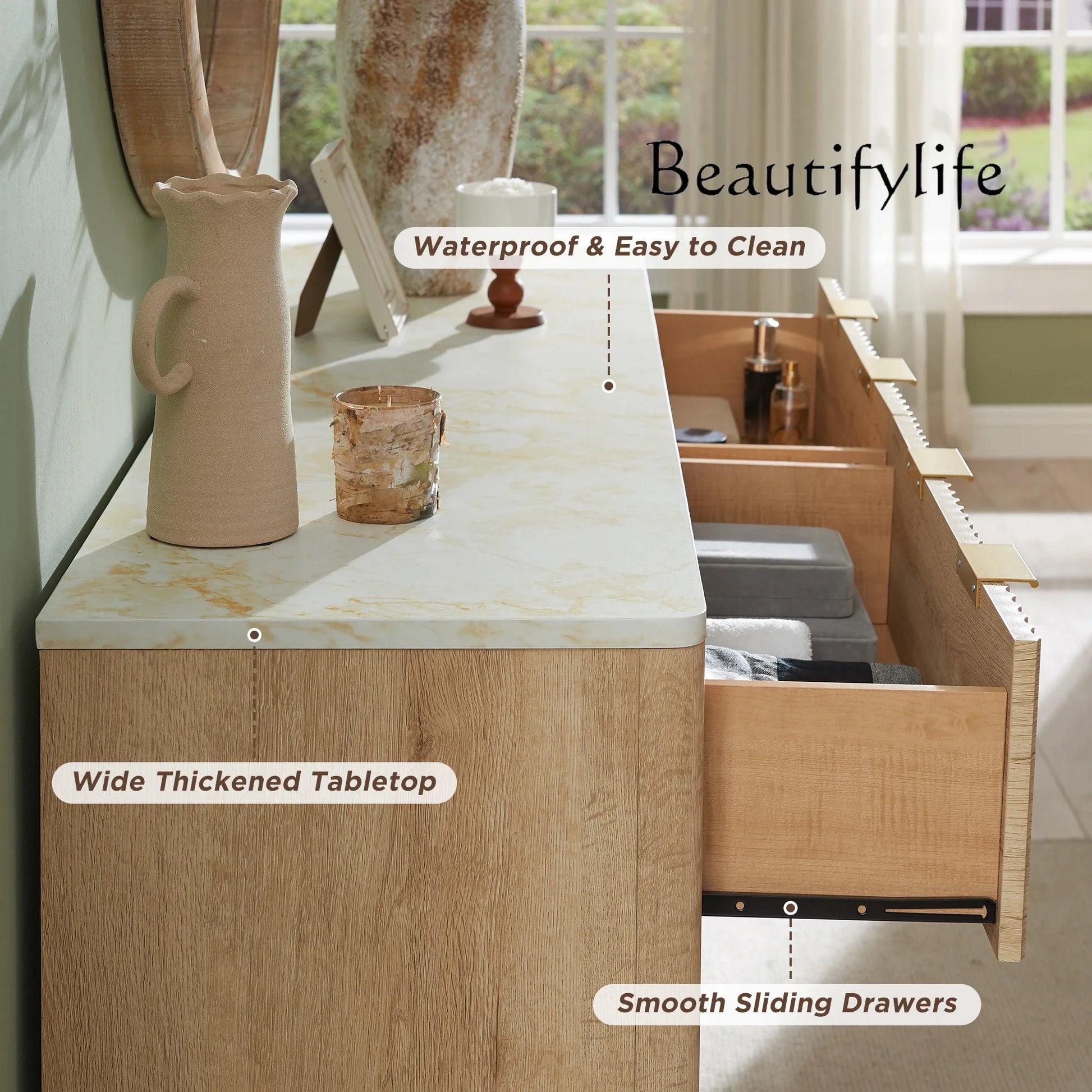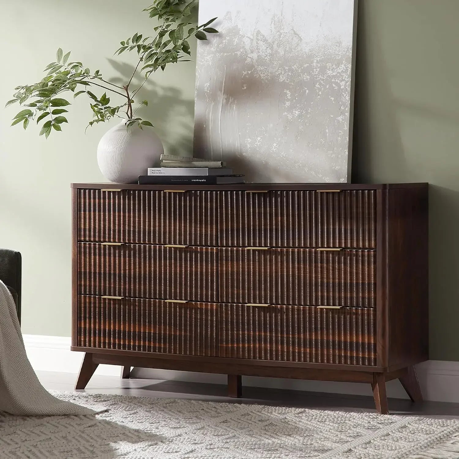 The distinctive waveform fluted panel enhances the texture and spatial presence of the dresser.