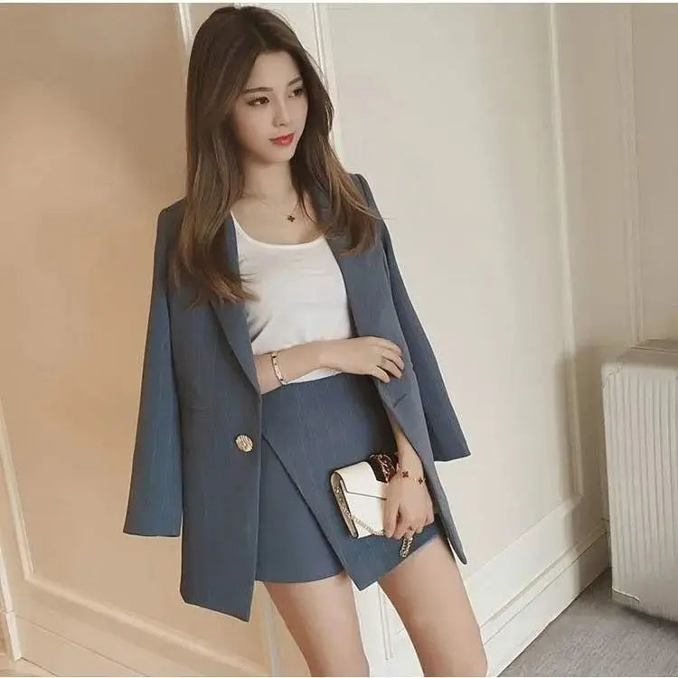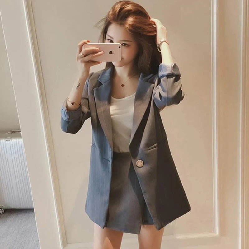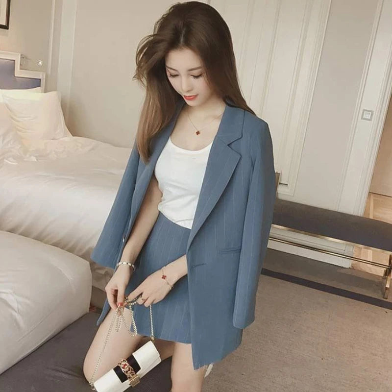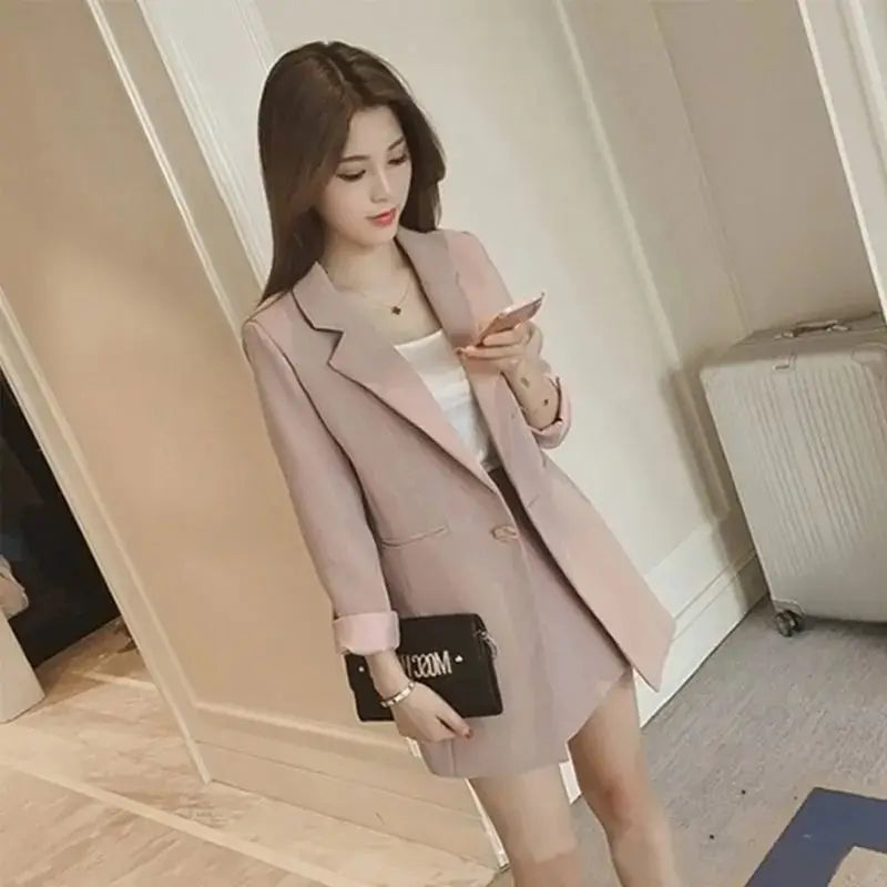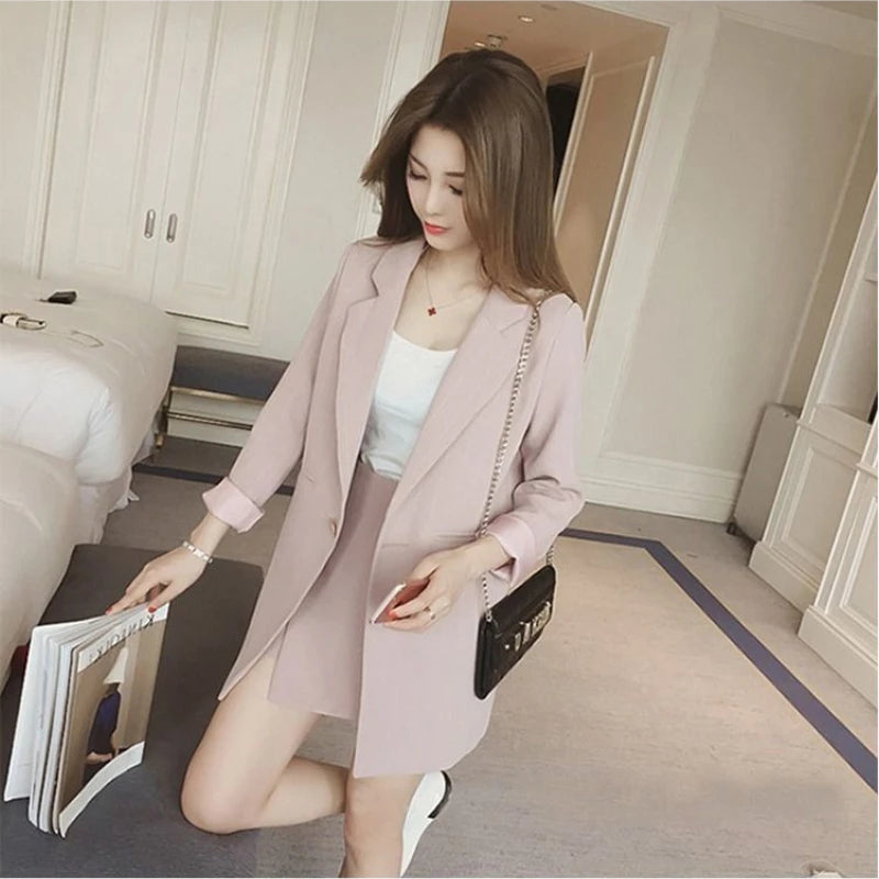 Black Two Piece Set for Women Suit with Skirt and Blazer Pink 2024 Office Long Sleeve Womens Short 2 Sets Outfit Summer Mini Hot