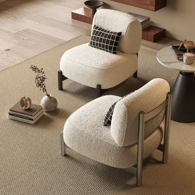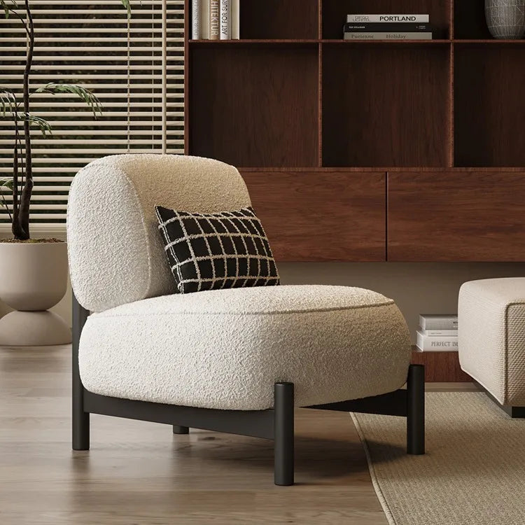 Cream Antique Living Room Single Sofa Designer Living Room Beauty Salon Reception Cloth Cashmere Leisure Chair