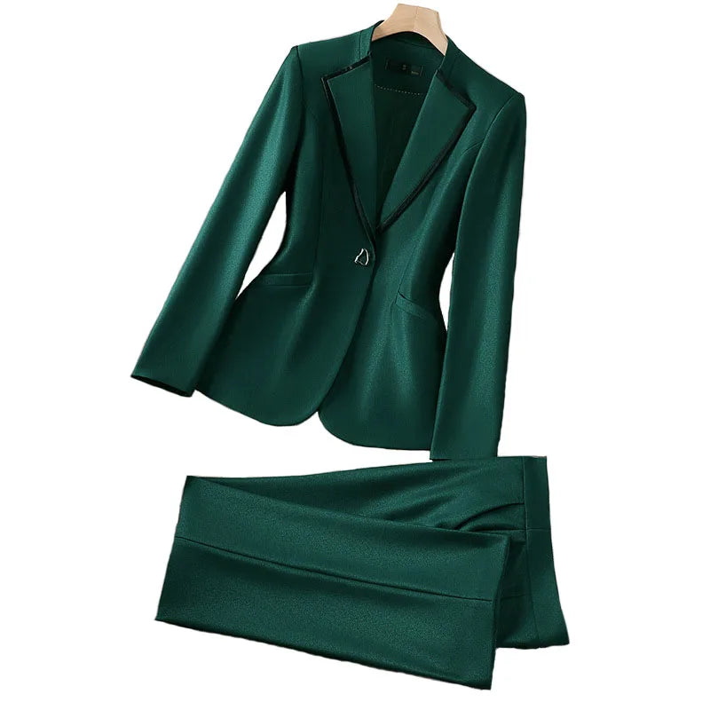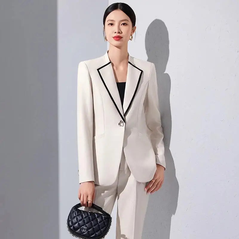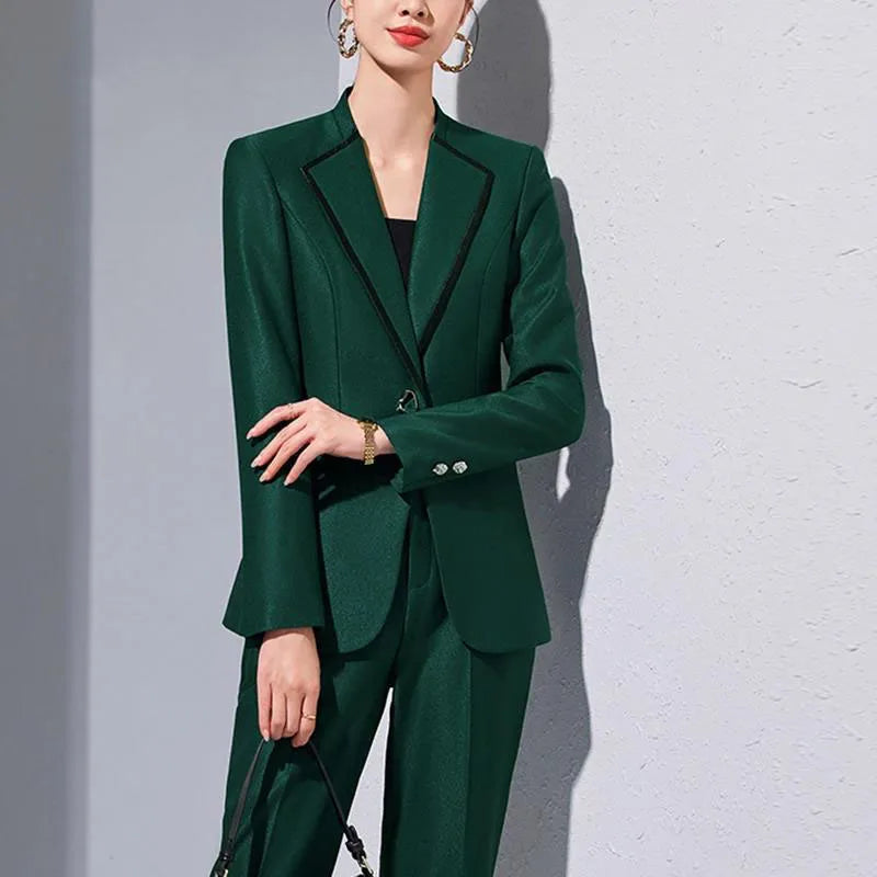 Elegant Single Button Blazer Suit Pant Sets for Women 2 Pieces Business Formal Office Outfit Autumn Plus Size Jacket Trousers