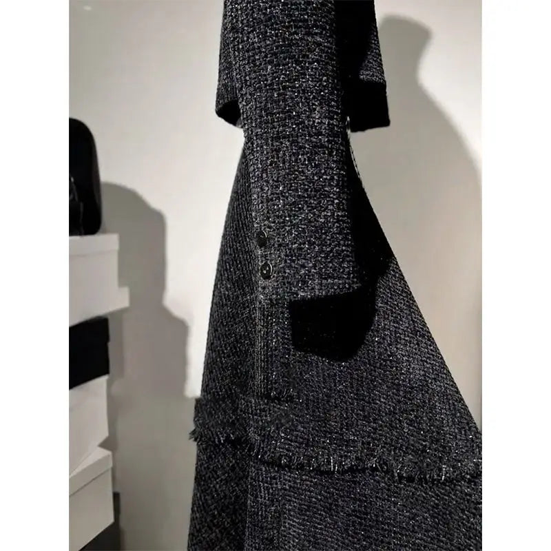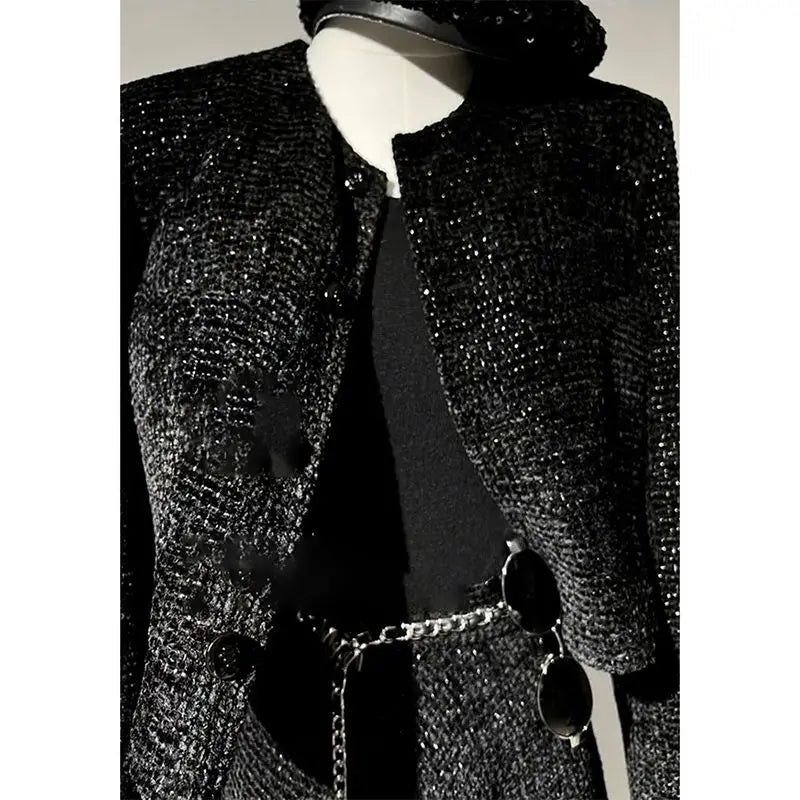 Elegant Women Clothing Tweed Style Long Sleeves Blazer Top + Long Skirt Suits Autumn 2025 New Fashion Two Piece Set Women's Wear