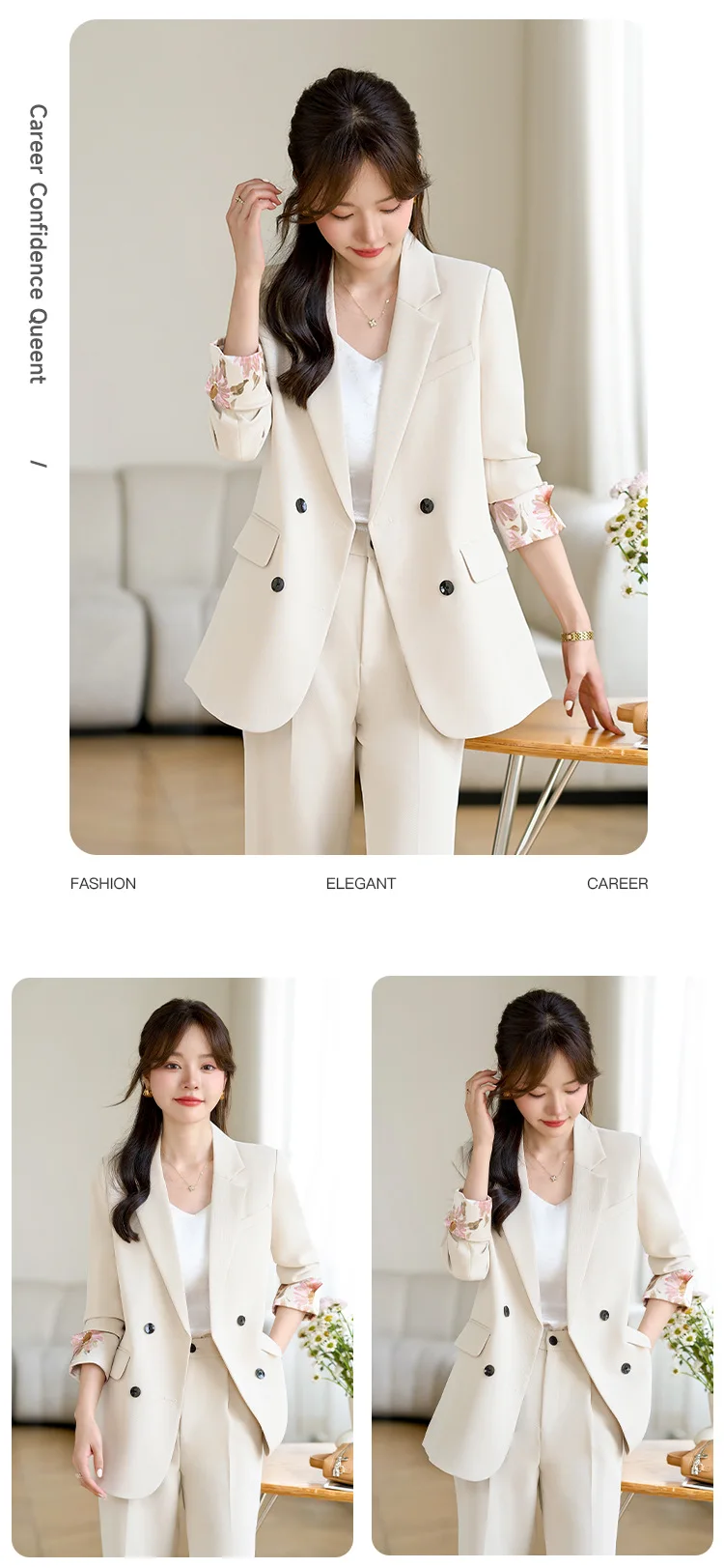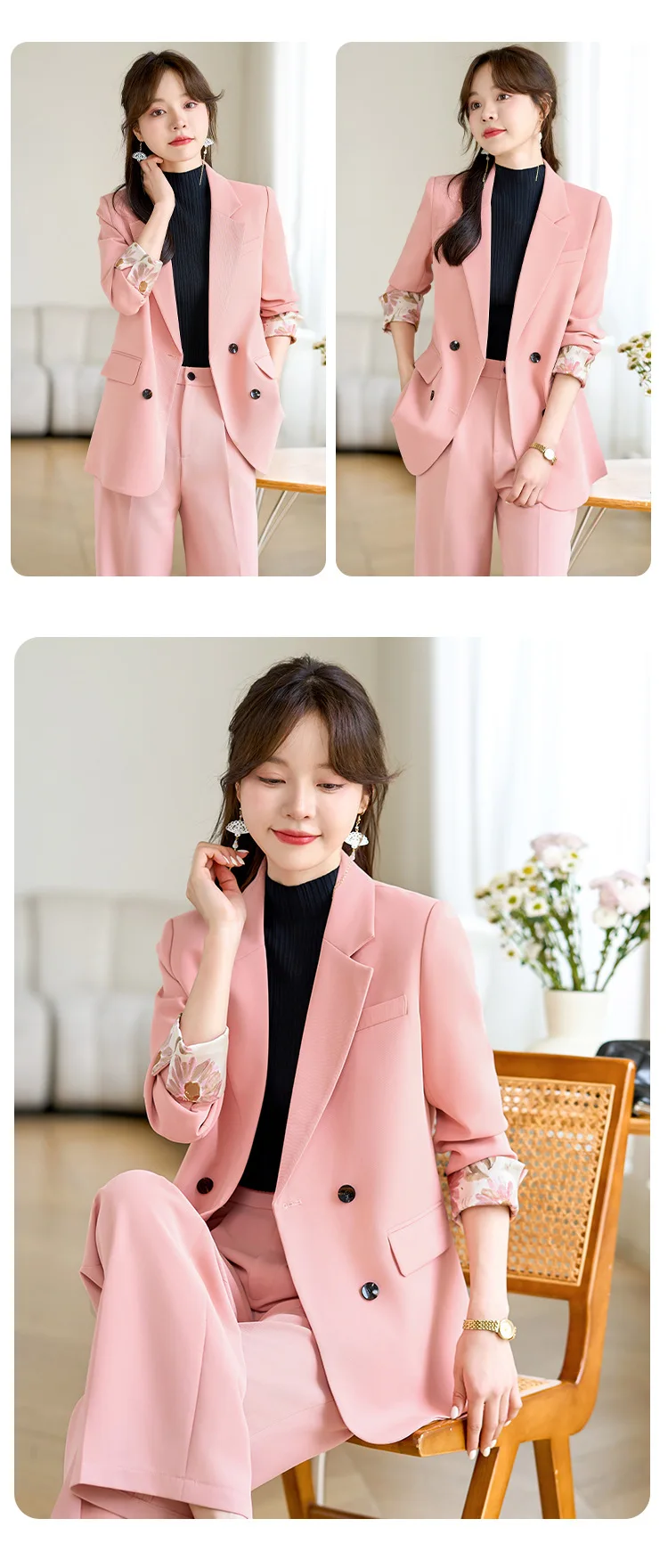Fashion Elegant Solid Women Blazer Pantsuit Casual Vintage Chic Suit Jackets Wide Leg Pants 2 Pieces Set Female Outfits