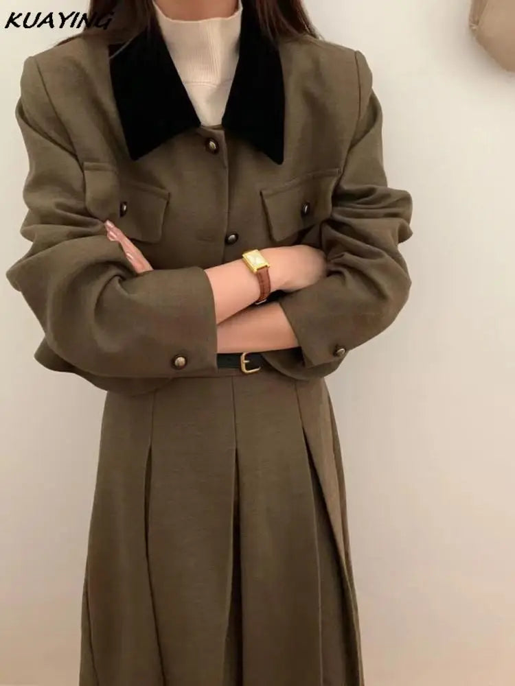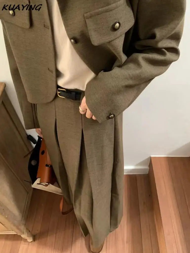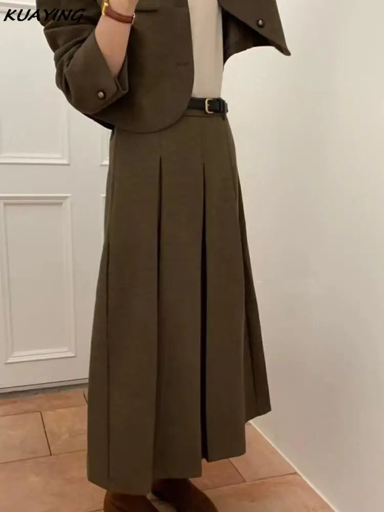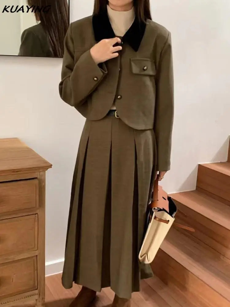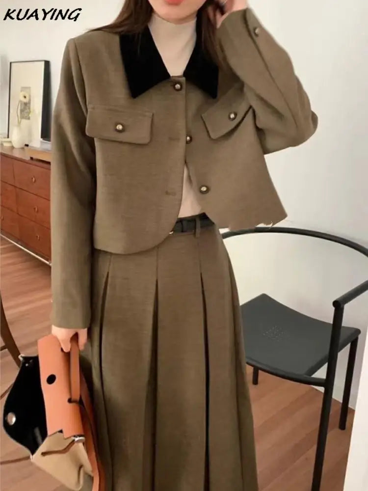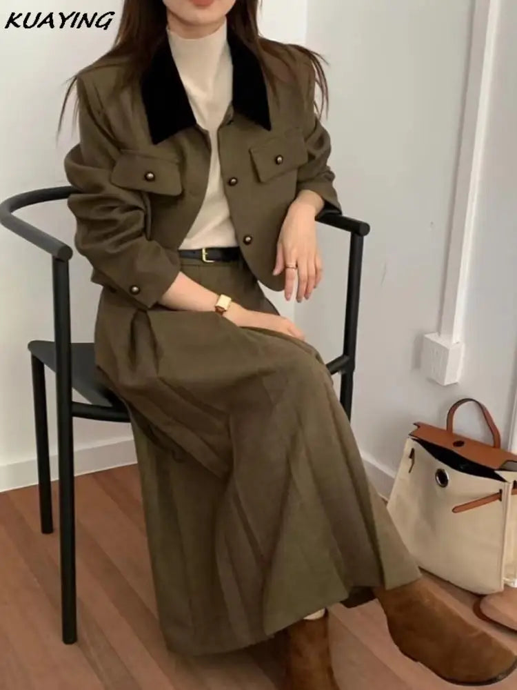 French Casual Formal Blazer Long Skirts Suit Women Vintage Business Suit Jackets Midi Saya Two Pieces Female Outfits Autumn New