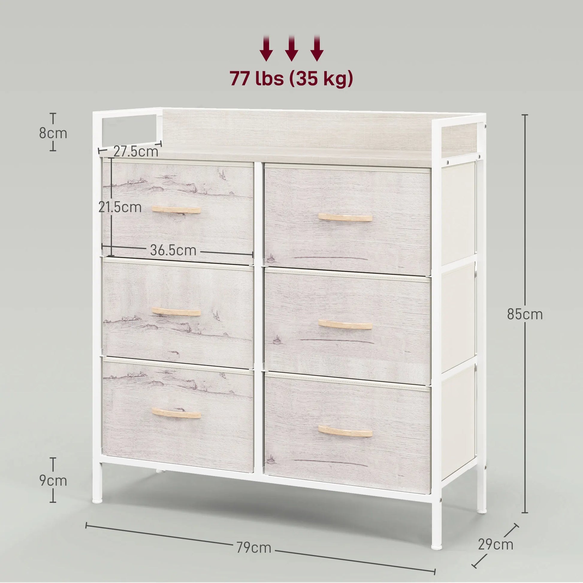 HOMCOM Bedroom Chest of Drawers 6 Drawer Dresser w/ Shelf, Natural