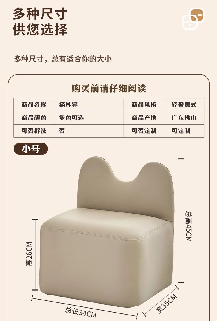 household high-end living room luxury shoe change stool with backrest footstool sofa hair stool