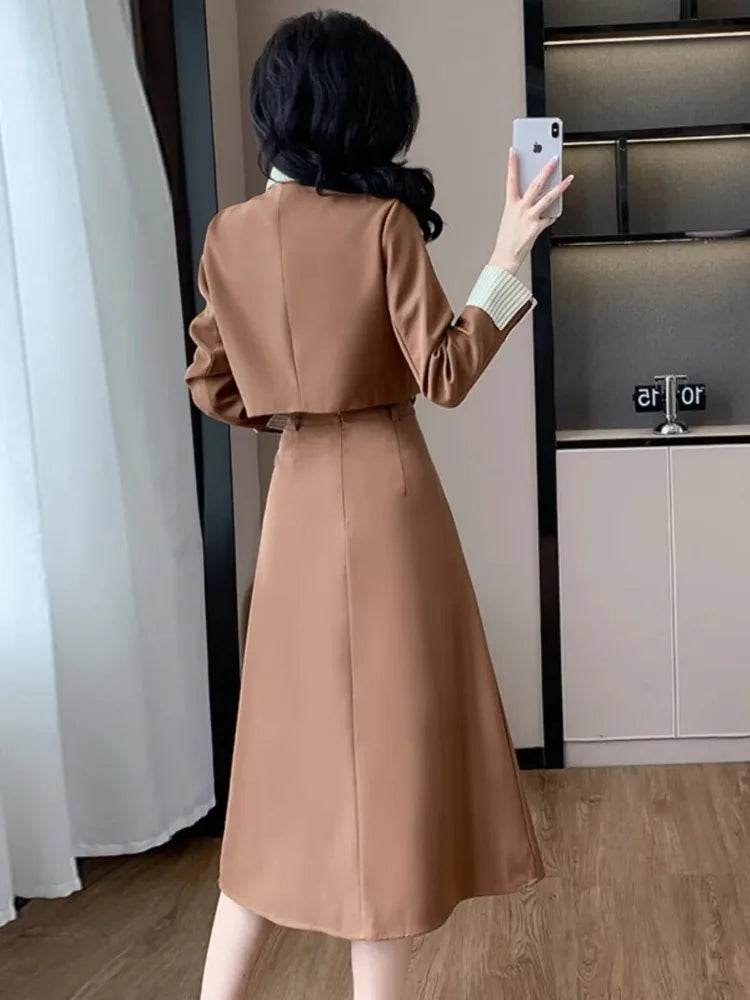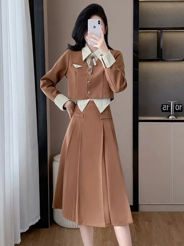 Insozkdg Autumn Winter New Blazer Skirt 2-Piece Set Women High-End Academy Style Korean Outfit Sets Female Office Lady Clothing