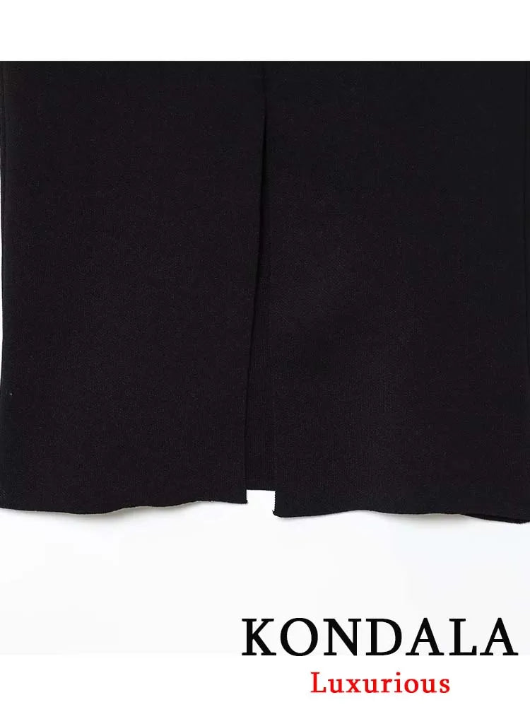 KONDALA Vintage Office Lady Black Solid Suit Notched Double Breasted Blazer Long Straight Skirt Fashion 2025 Autumn Female Sets