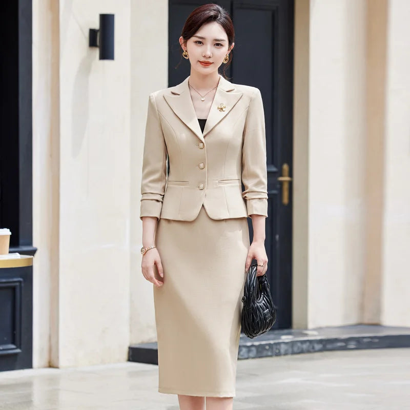 NAVIU Women Elegant Office Skirt Set Temperament Slim Fit Monochromatic Single Breasted Blazer Suits New Fashion Two Piece Set