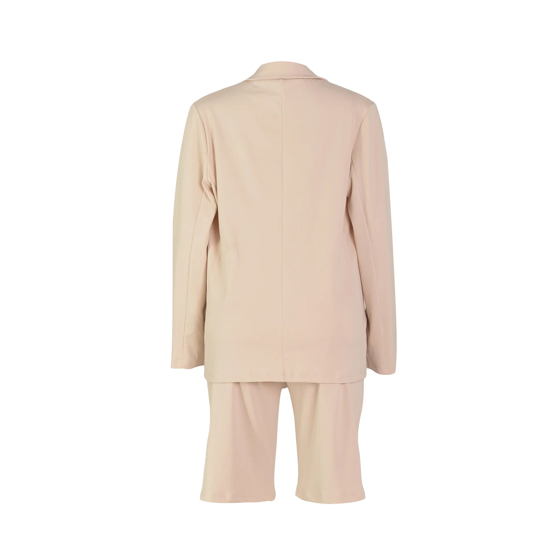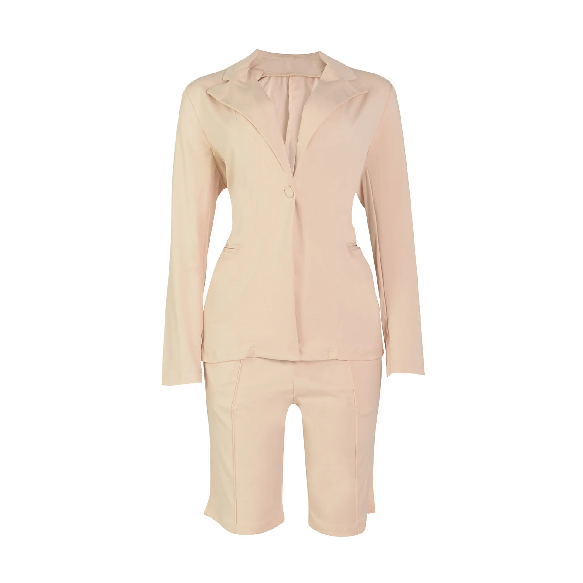 Office Lady Elegant Business Suits Solid Casual Two Piece Set For Women Matching Sets Outfits Long Sleeve Blazer Coat And Shorts