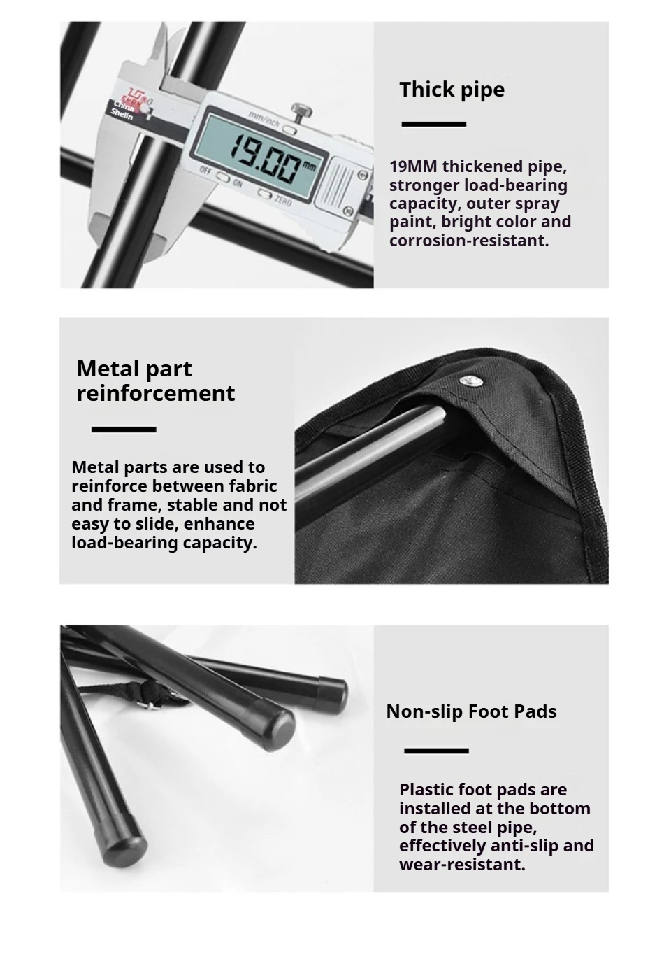 【1】 Triangular stability, easy to sit and secure: Innovative triangular stool structure, stable load-bearing capacity, can be easily unfolded and seated in one second, making outdoor rest one step faster than others