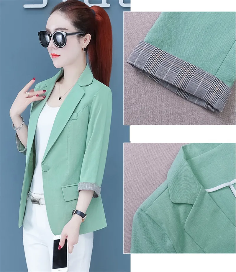 Spring Summer Women Blazers Jackets Casual Business Office Lady Blazer Suit Thin 3/4 Sleeve Coat Outwear Clothes Female Tops 749