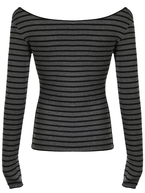 Sweetown Japanese Basic Slim Long Sleeve Stripe Tee Off Shoulder O