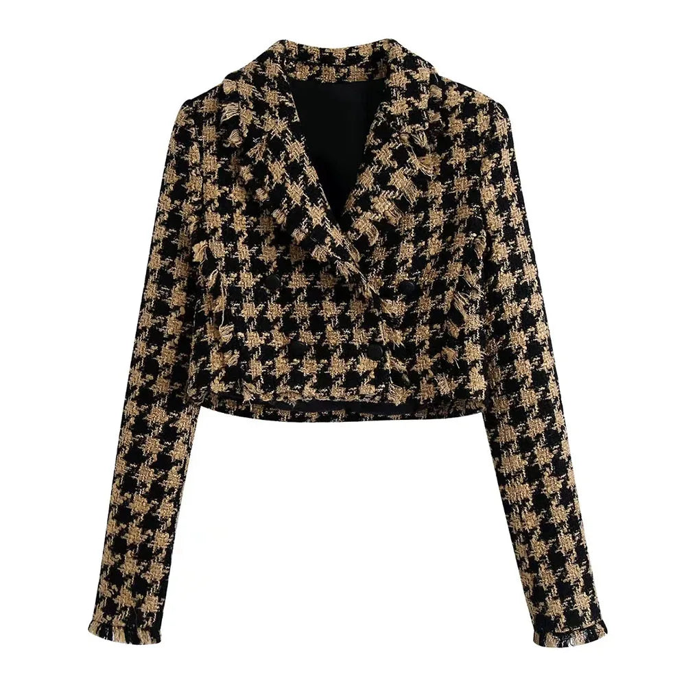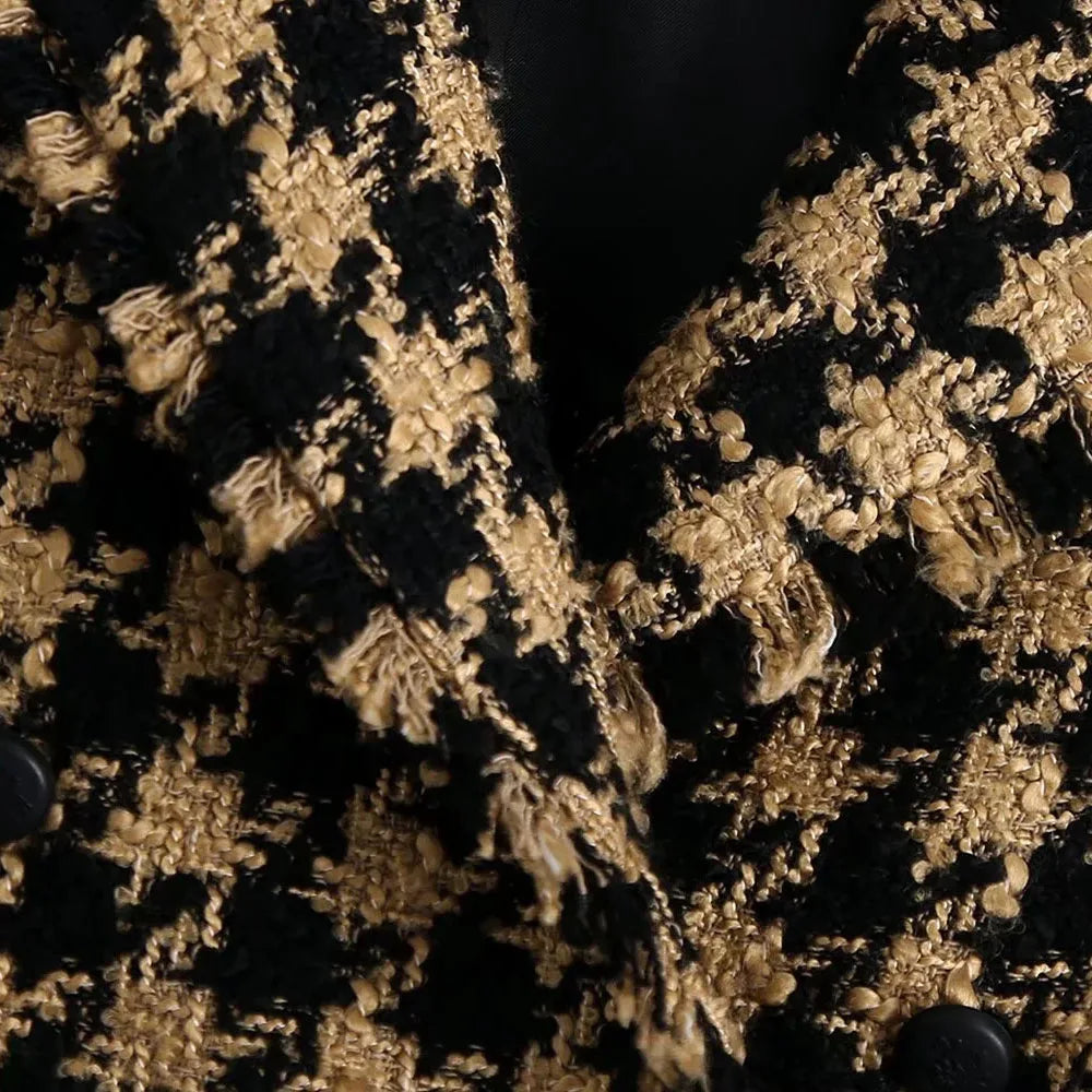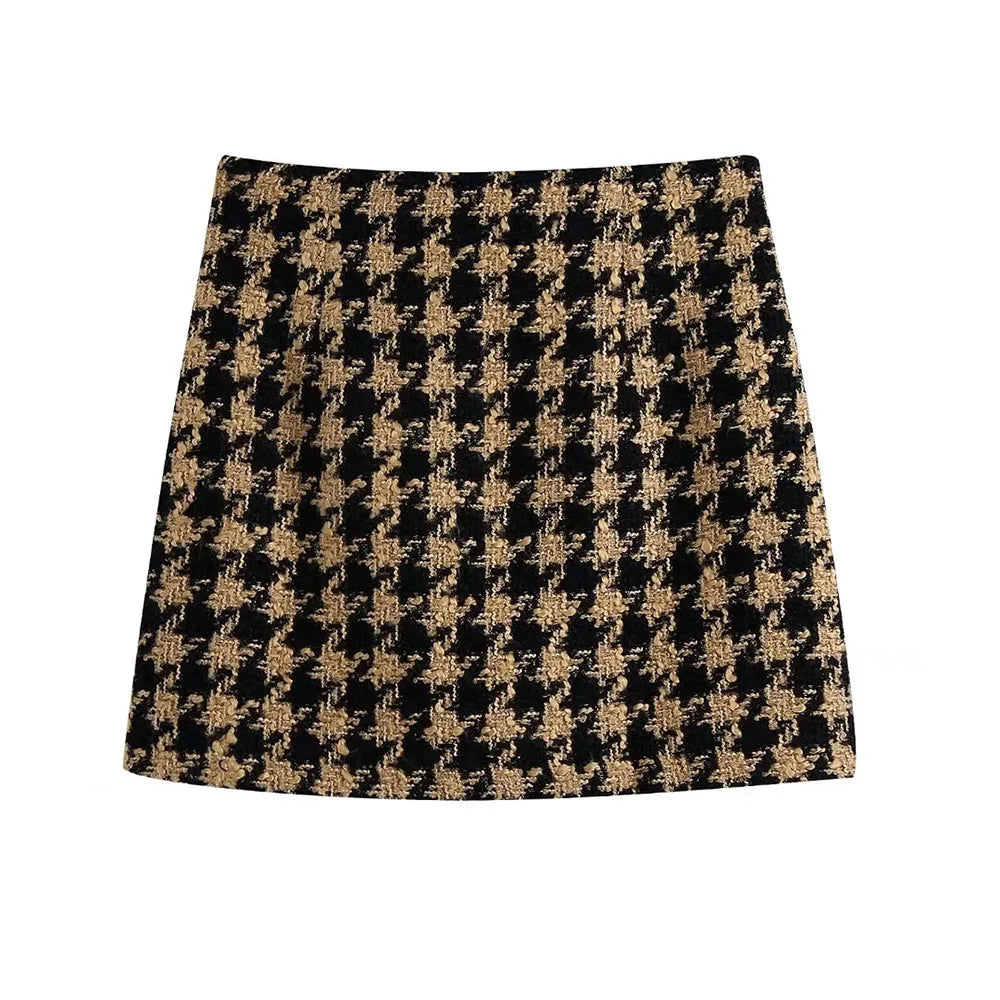 XEASY 2021 Tweed Women Two-piece Set Houndstooth Vintage Office Lady Short Blazer Female Casual Slim High Waist Skirt Suit