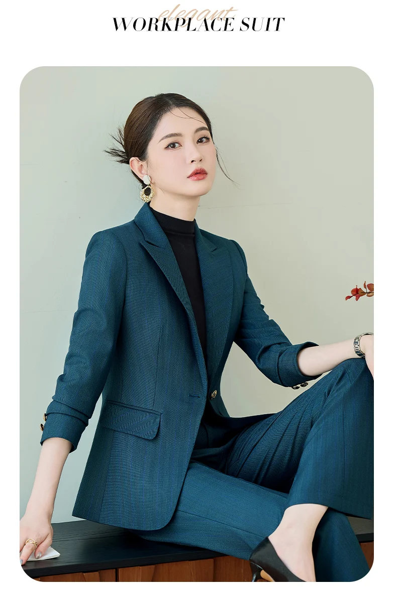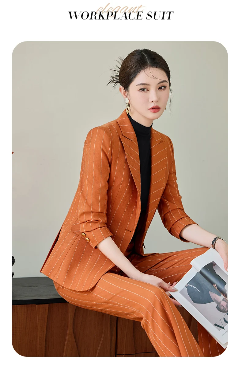 ZJYT Elegant Autumn Woman Blazer Suit Set One Button Striped Long Sleeve Jacket and Pants Two Piece Outfit Plus Size Trousers